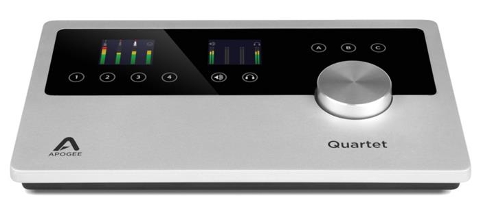 Quartet是Apogee为Mac和PC用户设计的4进8出音频接口,可通过USB 2.0线与电脑连接,24bit / 192kHz精度,前部有多达9个触摸点进行触控操作,超大的铝质旋钮可对音量进行精确的控制。