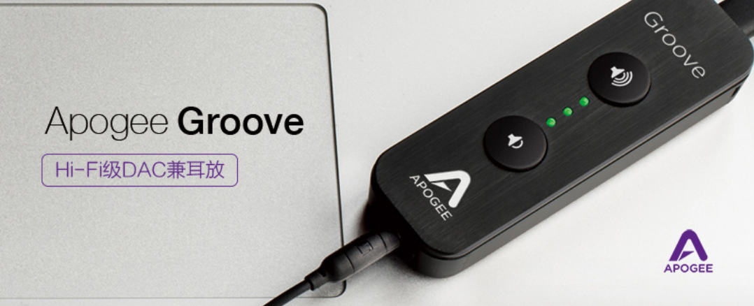 Apogee的Groove是一款新的适用于在Mac或PC上聆听音乐的便携式USB耳机放大器。Apogee的数字音频技术自1985年起已经获得了众多格莱美金牌制作人、专业录音师、歌手、以及音频工程师的信赖。Groove为所有渴望拥有高品质聆听体验的用户提供了小巧便携的解决方案。Groove细节丰富、动态出众的声音表现将令您耳目一新!