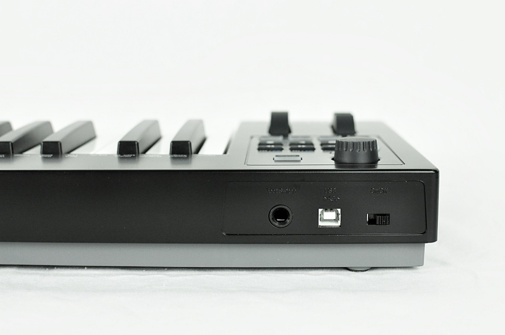 Impact GX 49跟其他MIDI键盘一样,采用了USB接口连接和供电,背面有一个开关和一个踏板接口。