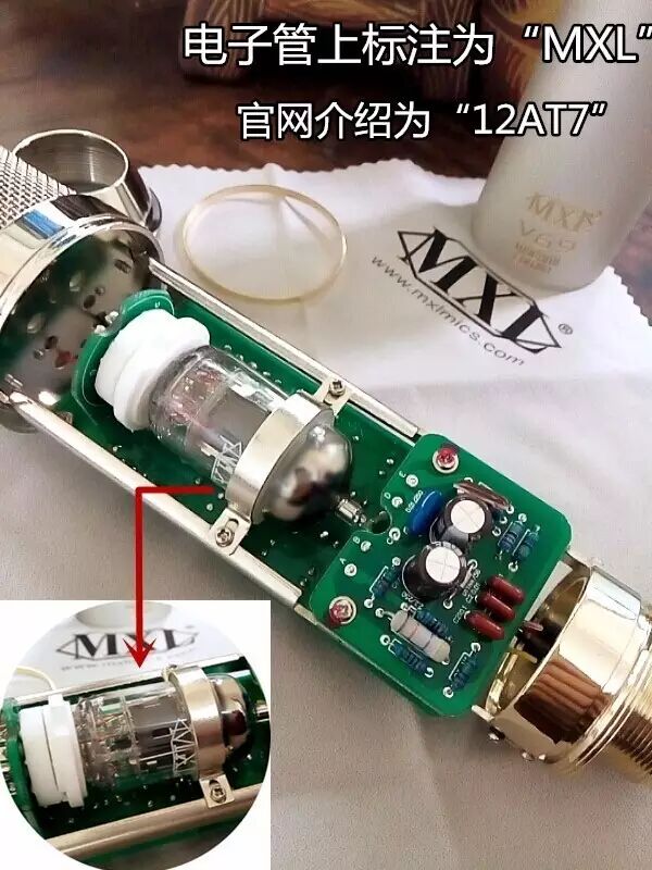 而一般电子管麦克风的声音好坏取决于其内置管子的品质。V69mHE的这颗管子上面标注的是MXL,没有看到一般电子管上会标注的型号品牌等,而官网介绍的是12AT7。熟悉电子管的朋友知道,12AT7是非常庞大的一个产品体系——品牌、型号众多。究竟使用的哪个品牌的管子我们不得而知,那就一切都让声音来说话吧!