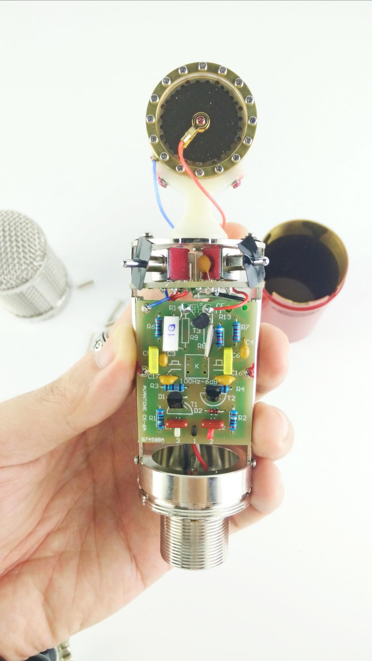 话筒的振膜是单面的32毫米镀金聚脂薄膜振膜,这个尺寸也是很常见的大震膜尺寸了。对于这一点上,也没有必要去怎么描述了。因为大家都知道,振膜再怎么看也就是眼前所见,最关键的还是振膜的调音和电路的配合。