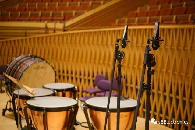 此外,现场中高频的打击乐器使用了sE5的笔杆式电容话筒来拾取,小提琴类的弦乐器则使用了sE最新研发的sE8话筒来拾取,sE8系列话筒源于多种音头可以互换的设计理念以高效的配合不同录音领域不同录音方式对话筒苛刻的要求。此次小提琴采用了常规的sE8心形指向性音头配合大动态低噪声的晶体管放大器的组合方式来录音。录制出的小提琴音色圆润、通透而细腻,sE8优秀的瞬态响应和频率响应特性把弦乐丰富的泛音和细致表现力还原的淋漓尽致。