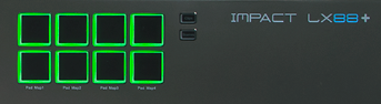 Impact LX88+ 带有 8 个高灵敏度的背光打击垫,具有精确的力度响应和4种可选的力度曲线,非常适合用手指演奏打击乐器。