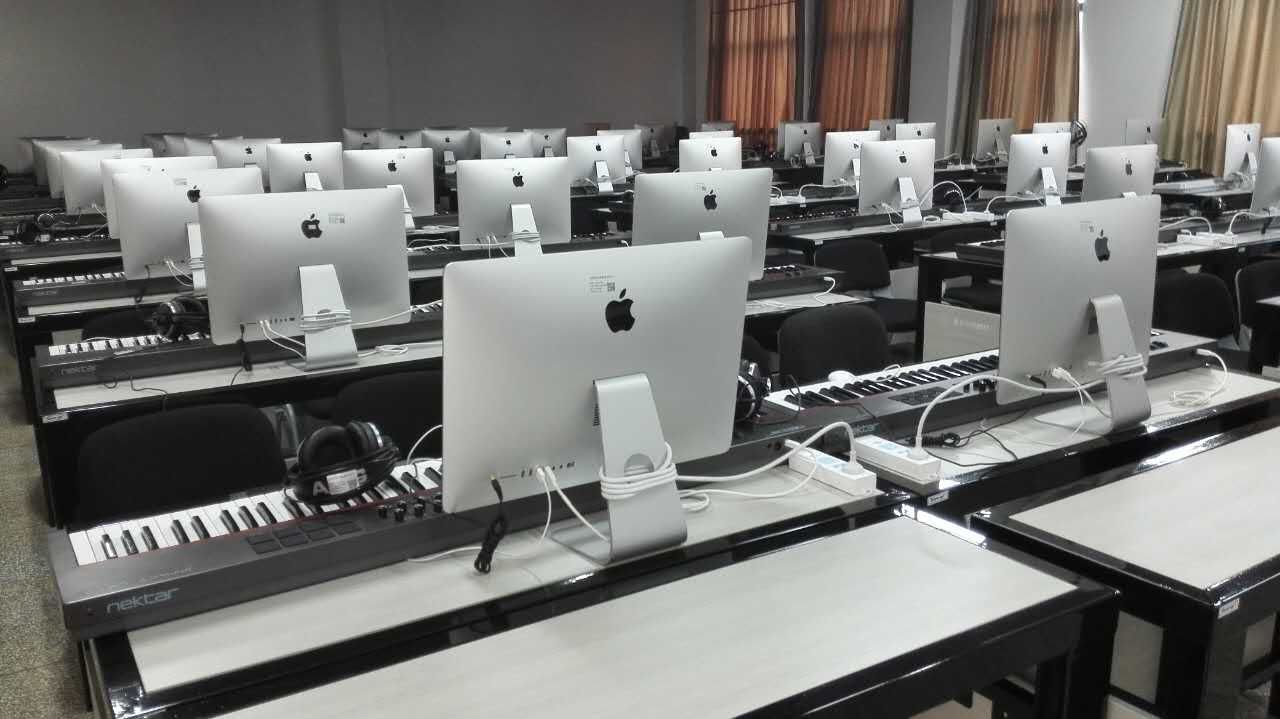 云南艺术学院新建的编曲教室内组建了30套编曲系统,全部采用iMAC搭配Nektar LX88+ MIDI键盘的设计。在整个设计过程中,院方对MIDI键盘这种主要编曲设备提出了明确的要求。首先,必须满足钢琴键盘全88键尺寸;第二,需要半配重来适应编曲制作的手感和力度反馈;第三,键盘对软件的设置不能过于繁琐,满足即插即用;第四,控制器种类丰富,要求有不少于8个旋钮和8个打击垫,满足各类乐器输入和轨道效果器控制;最后,一定要坚固耐用,并且节省空间。