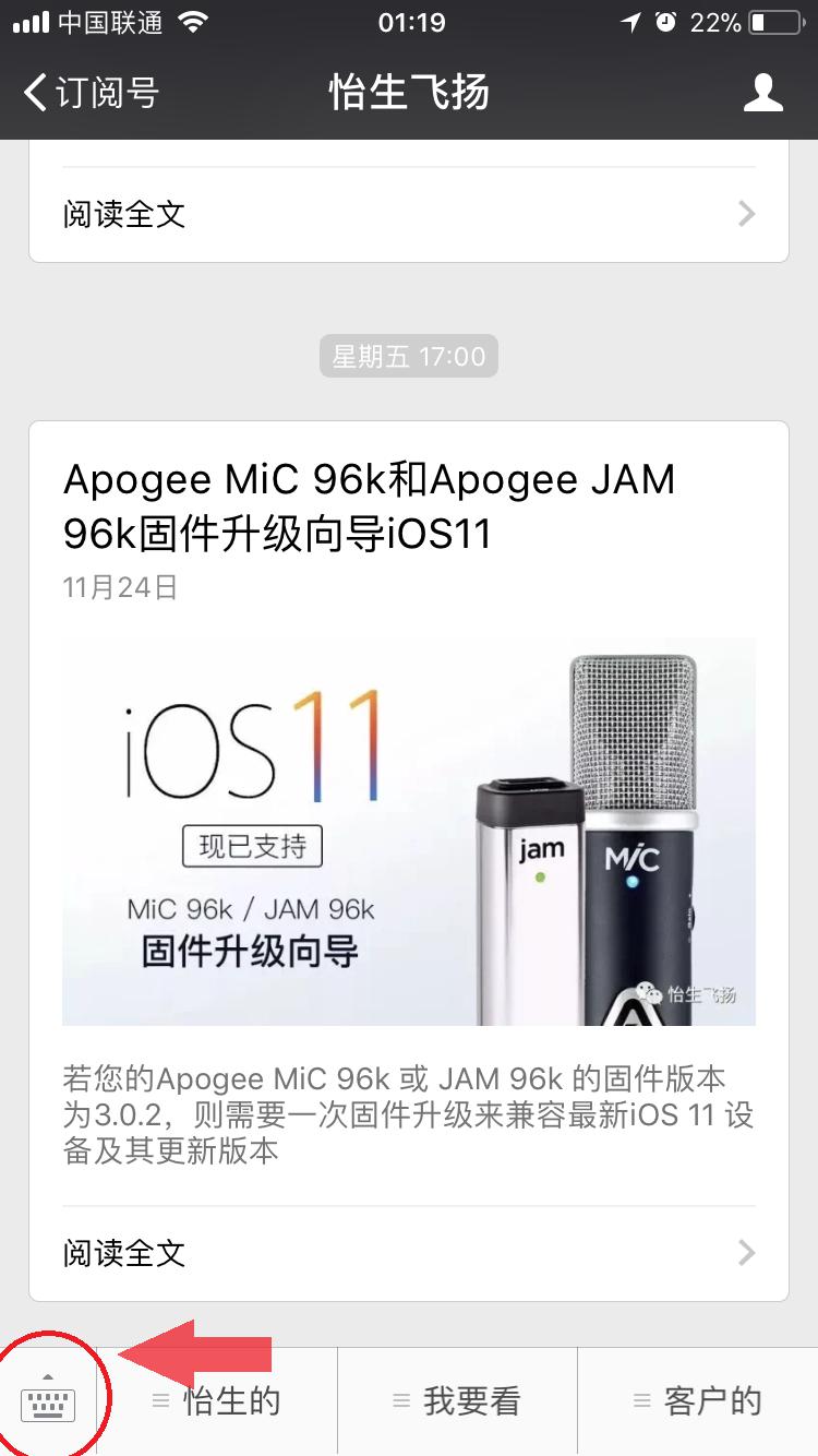 首先进入“怡生飞扬”公众号,点击左下角的小键盘图标