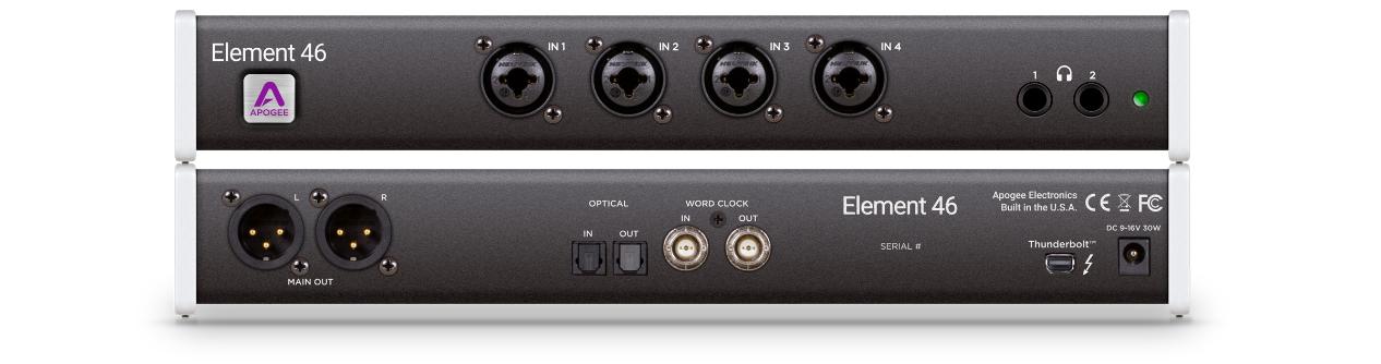 要知道,在Elemente 46仅仅7000元人民币的价位上,你能够得到12进14出的高品质工作室通道,2个独立的大推力耳放,高品质的时钟信号输出,以及雷电接口直达CPU的低延迟性能!更重要的是,你将拥有相当于数万元的Apogee顶级音频接口Symphony I/O的超高音质!