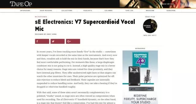 我使用V7快一年的时间,它总是能够出色地抓取人声,传递出的声音非常舒服。而且V7在各种方面充分满足现场演出的要求,甚至超越了很多行业标准话筒。