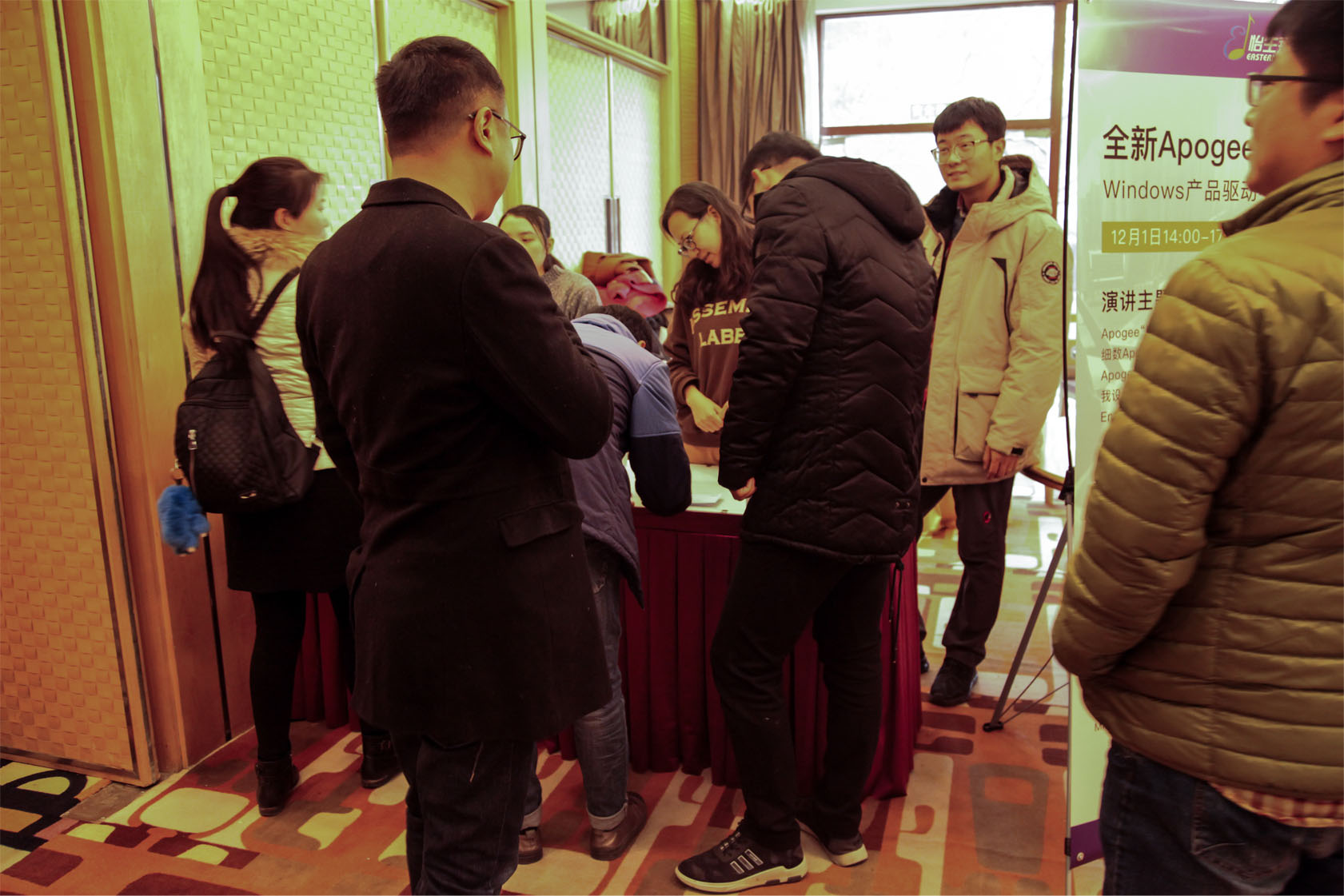 发布会当天现场气氛高涨,来自各大媒体、经销商,以及Apogee最忠实的用户们齐集一堂!由怡生飞扬的Apogee技术工程师们,为大家带来Apogee近期技术动向和新产品!