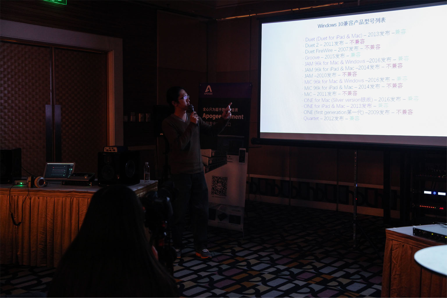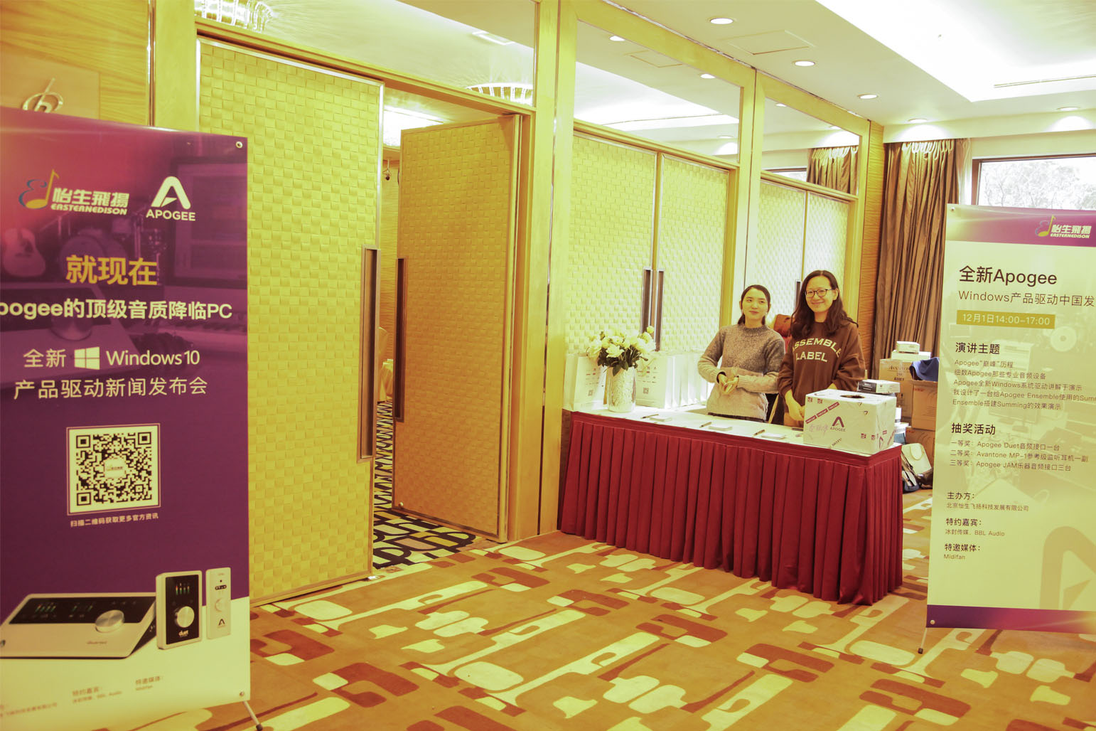 2017年12月1日下午2点整,Apogee品牌中国区总代理——怡生飞扬主办的“全新Apogee Windows 10产品驱动新闻发布会”于北京国贸地区的5L饭店宴会厅正式召开。