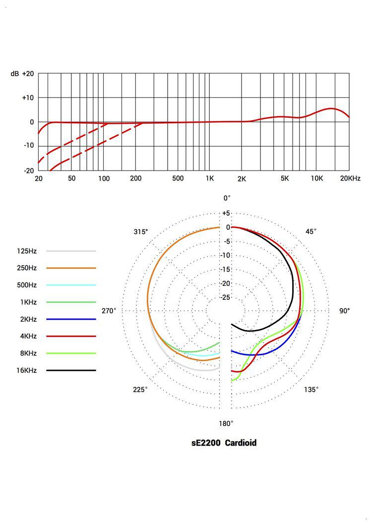 sE 2200在声音特性方面整体非常平直,高频的提升能够带来更加通透的声音特性,灵敏度和解析力出色,能够适应人声录音、乐器录音等多种场合。