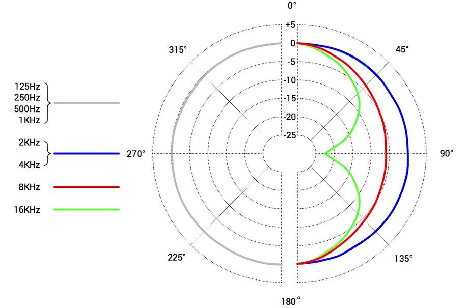 全指向话筒从四面八方接收声音,这种指向在图中用圆形表示。全指向话筒没有明显的近讲效应。所有的话筒都是全指向的,一部分会被工程师改变极性,改成不同类型指向的话筒。根据它的特性,我们可以知道全指向话筒适合用于捕捉房间整体的声音。