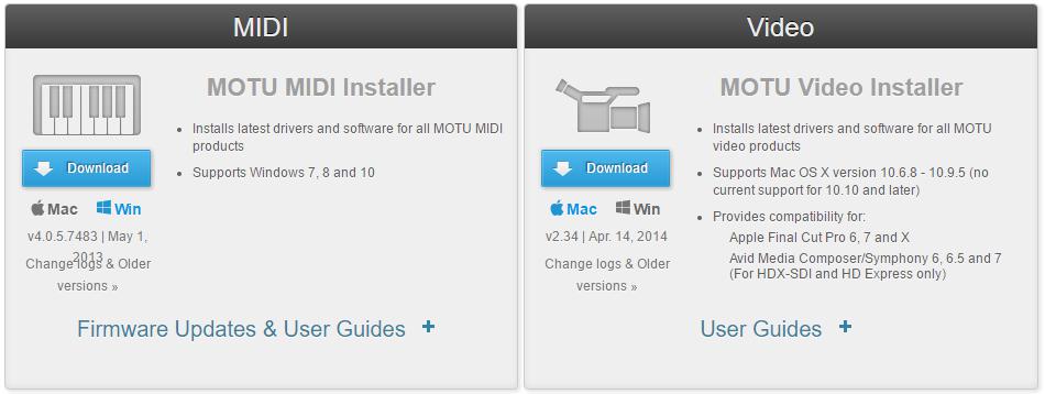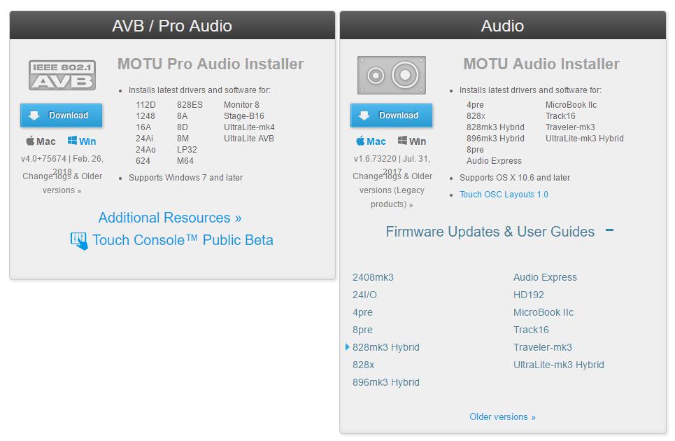 - 下载与安装MOTU音频接口最新的驱动程序(网址是:http://motu.com/download),你会发现MOTU每一个大类的产品只需要下载一个驱动程序包就可以了,比如所有AVB驱动都是一个包,所有音频驱动也都是一个包,这样可以避免复杂的检索和查找。