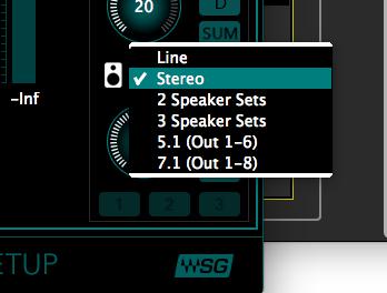 监听格式可以选择最多3对立体声监听或环绕声格式,由于测试机为8×8 MkII版本,环绕声最高可选7.1输出