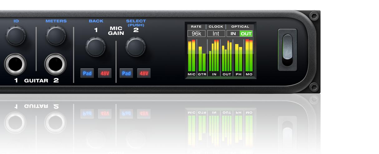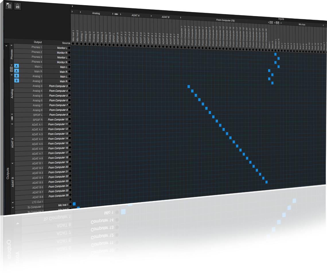 在连接你所有的音频设备的情况下,包括麦克风,吉他,合成器,键盘,鼓机,处理器,MIDI设备,光纤扩展,甚至踏板,所有的输入输出通道都能同步。