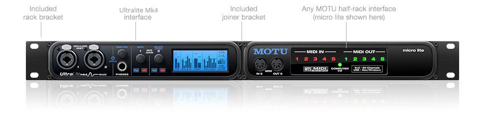 利用以下配件还可以将UItraLite-mk4和另一台MOTU的half-rack音频接口(MIDI 或音频接口设备)并排组装成一台标准的19英寸的设备。