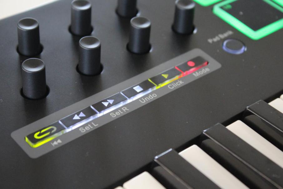 走带区域也是我非常喜爱的一部分,常用的六个走带功能+六个扩展功能承包了大部分的键鼠工作。本来走带按键的功能是:循环、后退、前进、停止、播放、录音。我长按shift按键在按走带,本来的走带功能就会变成:回到开头、左边定点、右边定点、撤销(就是键盘的ctrl+Z)、开启节拍器、模式切换(MIDI自动量化)。功能非常强大,看到网上对nektar走带都称之为“超级”走带功能。除此之外,走带按键还带LED灯背光,启用录音led灯会变红色,播放跟循环启用则会变成绿色。玩编曲的人都喜欢夜里工作,有这个LED着实能加分不少。这个“超级”走带功能真的让我非常满意,加上扩展的功能,以后就不用把电脑键盘放在MIDI键盘上面了,嘿嘿。