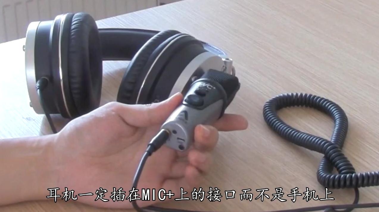 首先要注意的是,耳机一定插在MIC Plus上的耳机接口而不是手机上,这样可以获得更好的音质,同时方便监听声音。