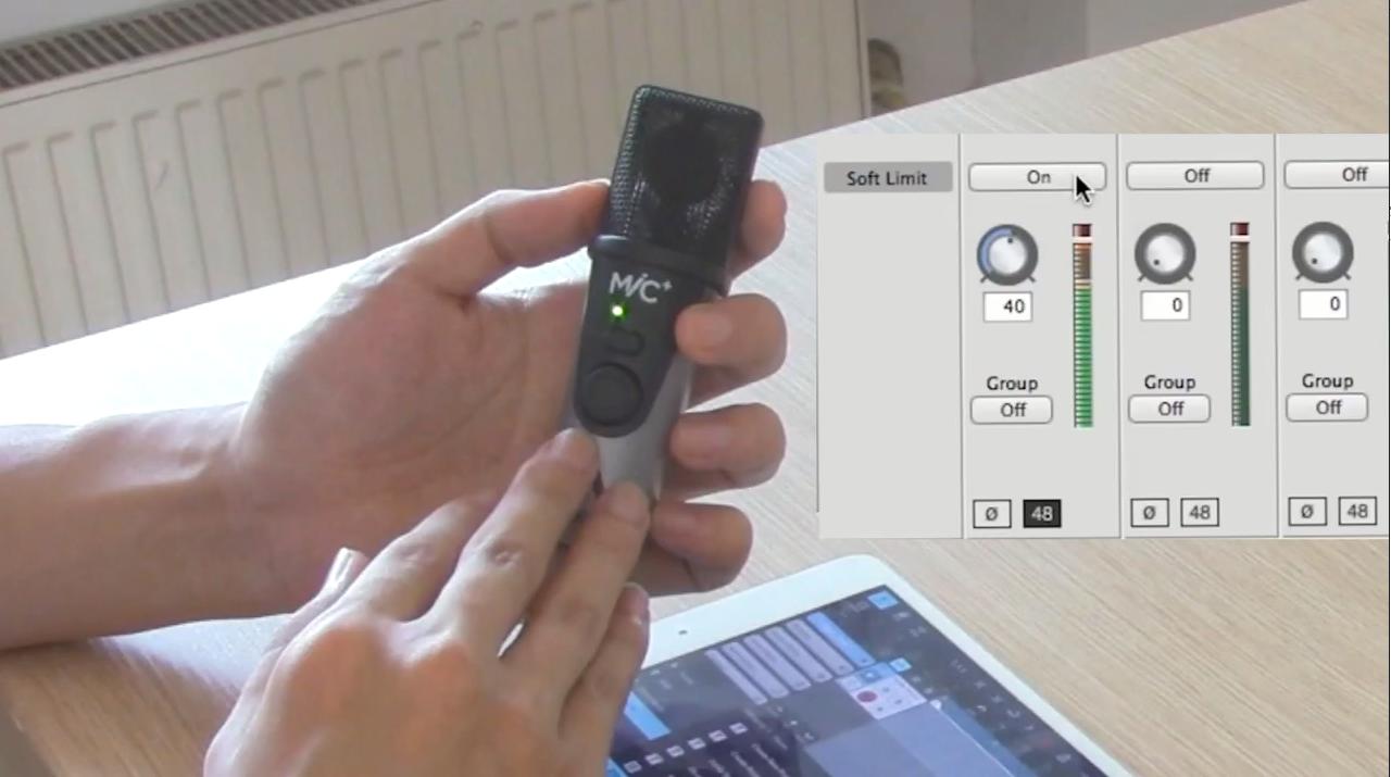 注意要将信号指示灯控制在绿灯的范围内,如果增益旋转过大,指示灯会冒红,这代表失真。由于MiC Plus自带软限制器,所以声音即使过载也很难完全破掉,只会感觉声音被压瘪,所以偶尔冒红灯是可以接受的,不要让红灯过多的出现即可。