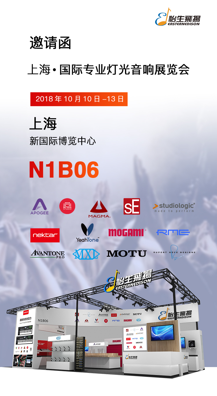 另外,再做一次小预告,10月份的上海国际专业灯光音响展览会,CLA-10也会和怡生旗下代理品牌一起,现场接受朋友们的咨询与体验——以下是展会邀请函海报。