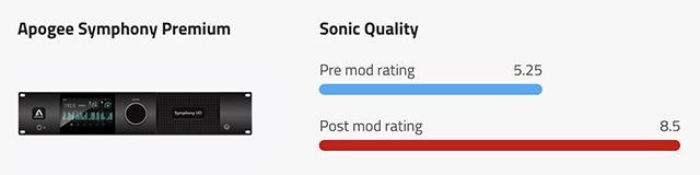 它们有个打分系统(下图),告诉你可以提升的幅度,例如将 Apogee Symphony 从 5.25 分提升到 8.5 分——这个价格是 $695 美金,官网有页面告诉你他们会对 Symphony 做哪些模拟和数字上的升级,然后你要把机器寄给他们,等上两周再寄回来。