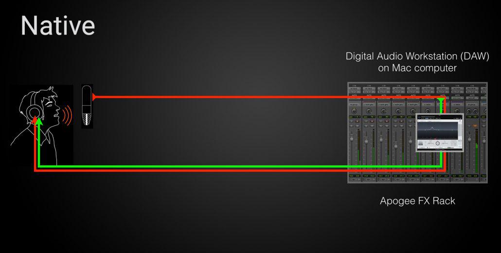 在原生模式工作流下,所有的Apogee FX Rack插件都可以脱离Apogee硬件,自由加载进DAW数字音频工作站内,使用CPU进行运算。你可以用和通常插件一样的使用方式来进行音乐处理编辑工作。
