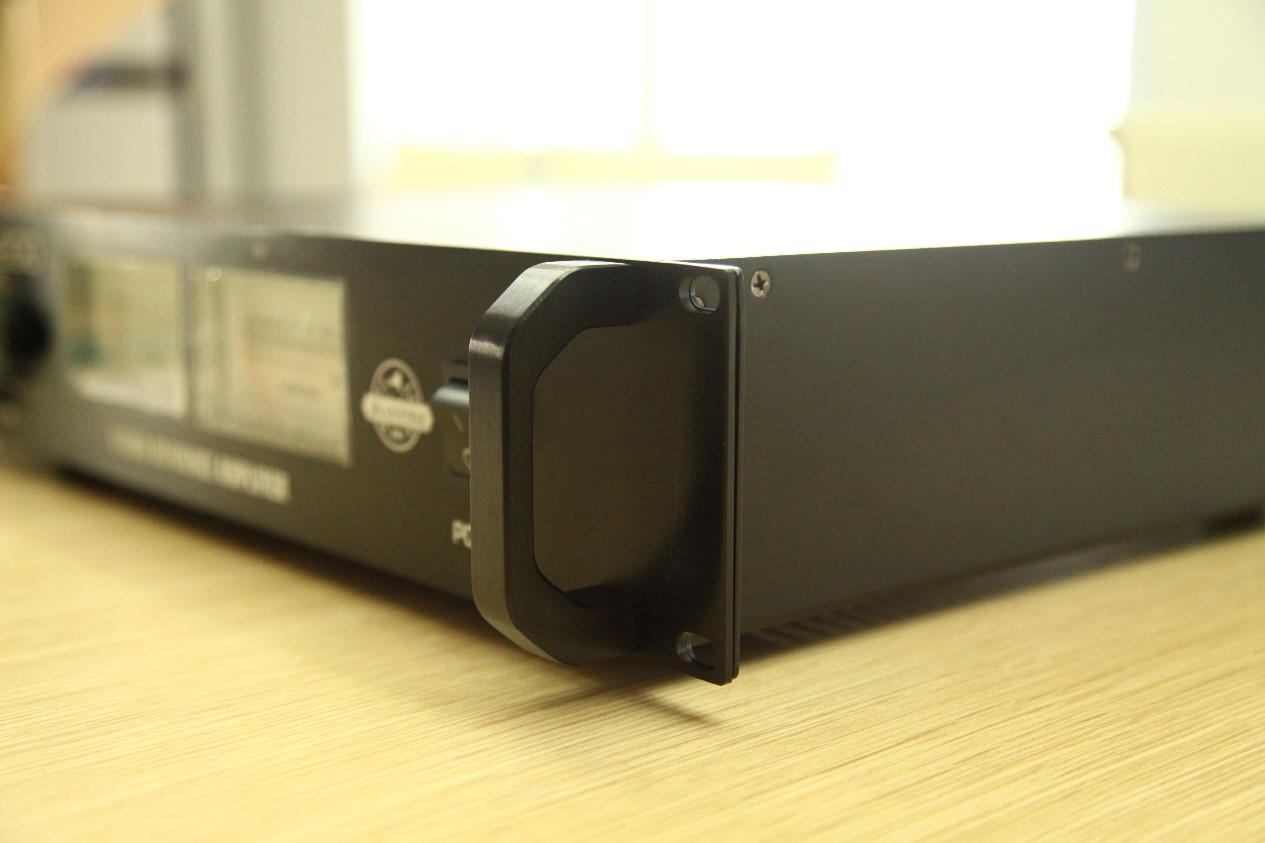 CLA-200采用全金属机身,2U大小设计。下方带有4个脚垫,如果上机架的话需要将脚垫拆掉。正面有两个面积硕大的复古UV表,开关以及分别控制两个独立通道的音量旋钮。左上印有Chris签名和型号。左右两侧还分别设计方便提拉的金属把手。因为功放本身是AB类,内部牛和电路的重量应该不轻,再加上纯金属外壳,一个人要轻松搬运还是比较困难的。