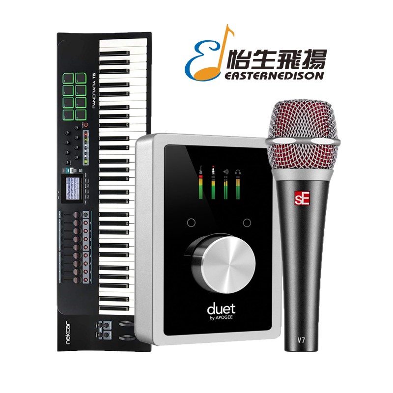 Apogee的卓越音质,Nektar T系列midi键盘的强大功能再加上及其适用于舞台现场的sE V7人声动圈麦克风——这样的强大组合,