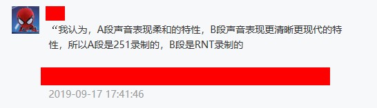 这位同仁对于声音的听感描述非常准确,但是结论却完全反了。M251因为三段都比较平,所以声音特性上没有特别突出的地方,在现代风格的听感理念下,中频部分相对B段就有了衰减更快一点的感觉,而听感贴耳、细节丰富恰恰是RNT更加突出的优势。