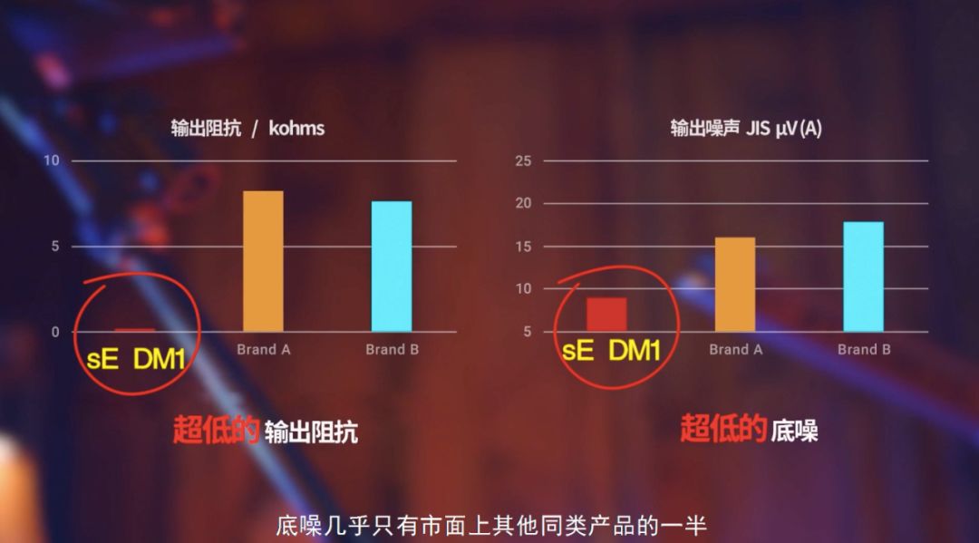 sE DM1 具有超低的输出阻抗,底噪确几乎只有市面上其他同类产品的一半。