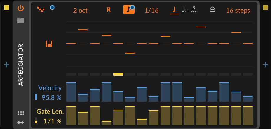 Arpeggiator(琶音器)是现代电子音乐制作的创意来源,在新版本中将加入众多新功能。除了力度和音符长度,每一步进增加了音高控制。对于MPE乐器(例如Roli控制器),micro-pitch变化可被记录,每音符的压力信息将更新音符力度以实现更加动态的演绎。