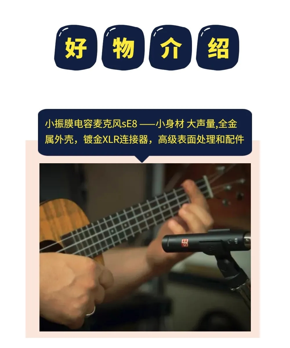 这只是原声吉他录音的一种方式,当然我们还有很多方式,不光是用两支小振膜电容麦克风sE8来录音,我们还可以用大振膜电容麦克风、铝带麦克风来录音。这是我对原声吉他录音的分享,希望对大家有所帮助。当然大家不必拘泥于我的方法,可以发动自己的想法尝试其他方法,比如麦克风摆位的远近拾取到的声音都会有区别。实际上,录制吉他前期麦克风的摆位和调试要远远大于后期,原始音轨是非常重要的。