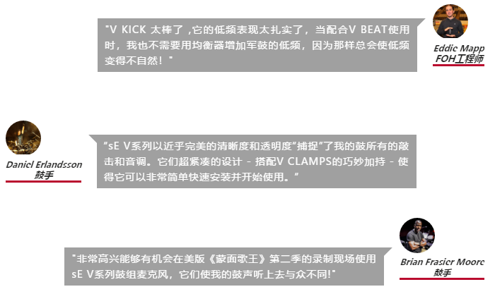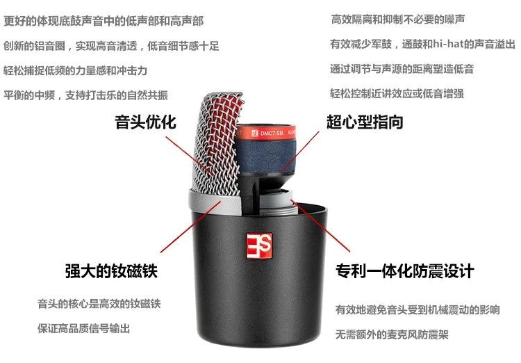 - 要通过一个小的通孔,将一个体积大的、且不实用的底鼓麦克风放置到底鼓中是非常困难的。常常需要依靠其它的配件来完成(特制的线缆,麦克风夹或支架),不稳定的同时,占地面积大、成本高。