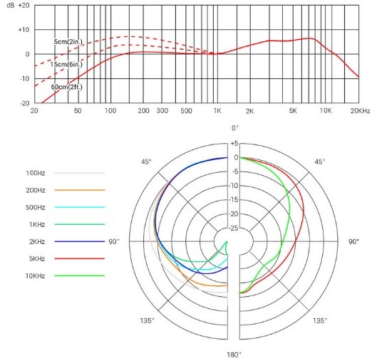 也许有些人会跳出来说,过于个性化的麦克风产品会影响其适用受众。幸运的是,V3听感的个性化并没有难于掌控,而是频响曲线和灵敏度折中与平衡的恰到好处。从下图中V3的频响曲线可以看得出,在2~9K的区间范围,V3的灵敏度有着稳定的提升,这种提升在8K左右达到峰值。对于一款手持动圈麦克风来说,这种适度提升可以增加声音的层次感,可使得人声更加清晰,吉他更加动听,军鼓、镲、小提琴等乐器的声音进而得到美化。