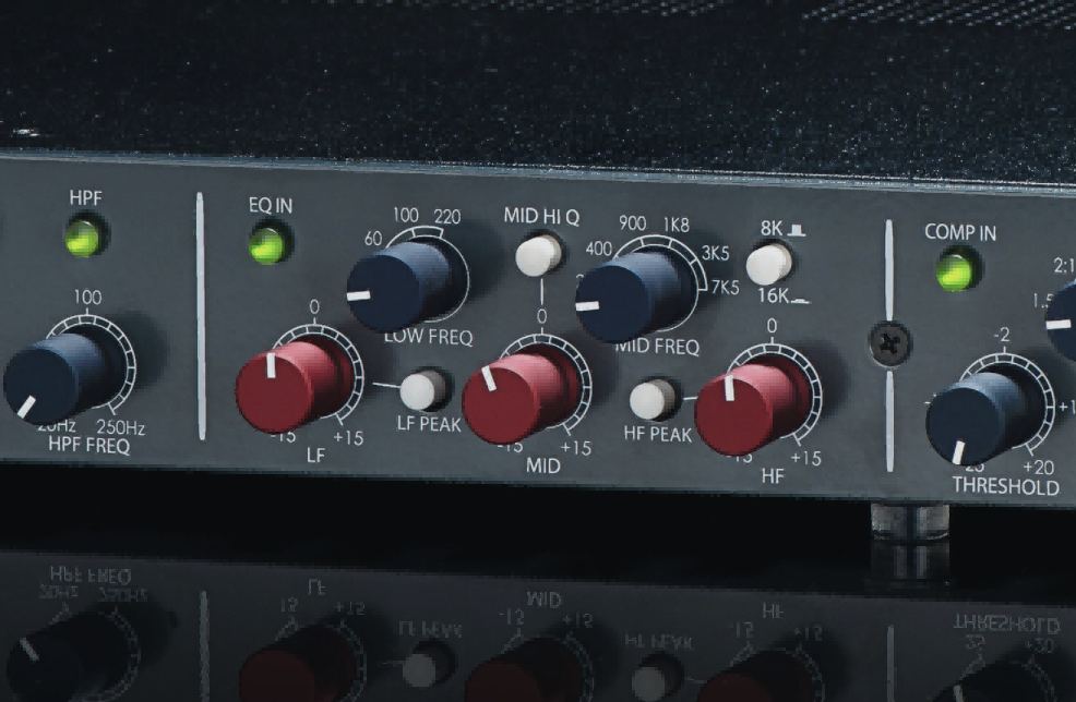 Shelford Channel的三段式电感EQ完全基于Neve的经典设计和众多经典型号的最佳融合!低频部分的设计来源于Neve 1064模块,而中频部分的设计则来源于更加经典的Neve 1073模块,高频部分则融合了经典和现代的设计理念,将电容器和电感电路结合,目的是在实现经典复古音色的同时拥有更适合现代音乐制作的控制功能。