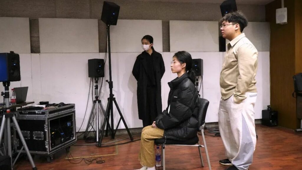 在这次交流会的筹备阶段,作曲系党总支书记吴迪、副主任朴英、副书记伍爱京英对《音频矩阵学术交流会》的组织和策划给予了高度关注,积极推动与音频矩阵的合作,以确保活动的质量和效果。在活动开始前,他们不仅亲临现场指导工作,还与音频矩阵团队进行了深入交流,倾听他们的意见和建议,共同探讨音乐产业的发展方向。