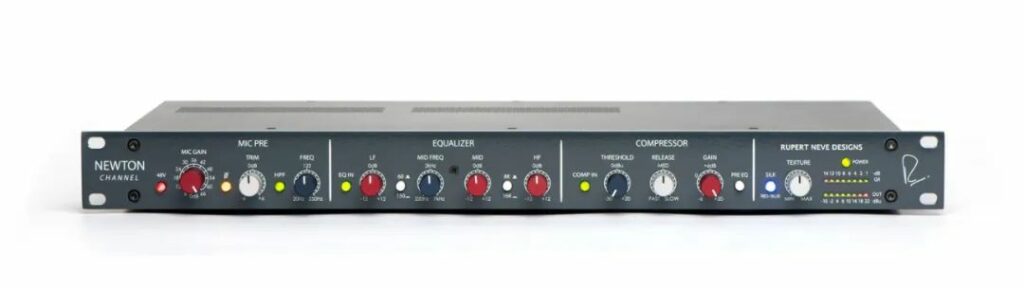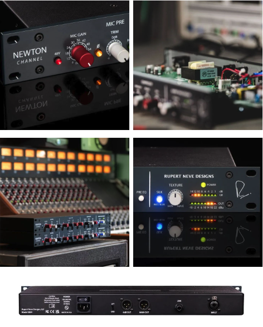Newton Channel(5034)包括一个全A类话筒前置放大器,可扫频的高通滤波器。3段离散均衡器的设计,中频段可进行直观的全参数调节。一个快速灵活的VCA压缩器,和定制的Rupert Neve Designs变压器,以及RND最受推崇的可调整谐波染色——SILK Red 和 Blue。