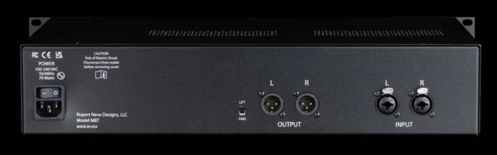 在结构设计方面,MBT为2U 19英寸的机架,黑色面板在控件之间提供了充足的手部操作空间,白色文字标示清晰。在设备背面,可以找到用于平衡输入/输出的XLR接口,以及集成开关的IEC标准电源接口。在其内部,设计、布局、组件和构建都体现了RND产品极高的制造质量。