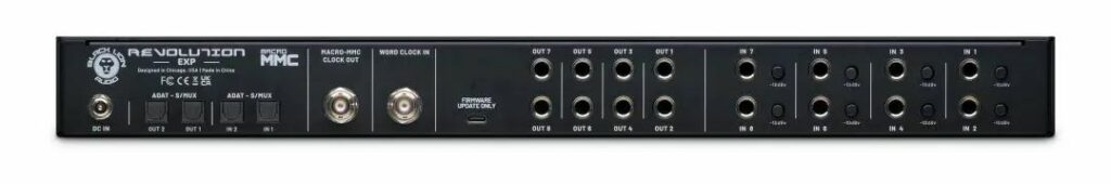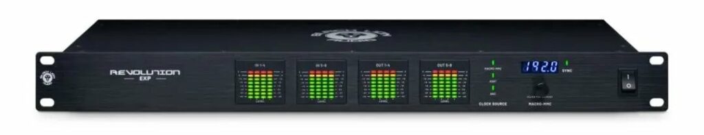 Revolution EXP 是延续经典 Revolution 系列卓越音质的全新扩展设备,带ADAT接口的8 x 8 模数/数模转换器和字时钟,支持高达 192 kHz 的采样率。通过 Revolution EXP 可以为带有 ADAT 接口的声卡添加更多输入和输出,提供16 个模拟 TRS 连接(8 个输入、8 个输出)以及 16 个 ADAT 输入输出通道。专有的 Macro MMC 时钟确保 Revolution EXP 连接的每台设备都能获得高品质的声音,它可以作为整个工作室的主时钟,也可以作为从机。