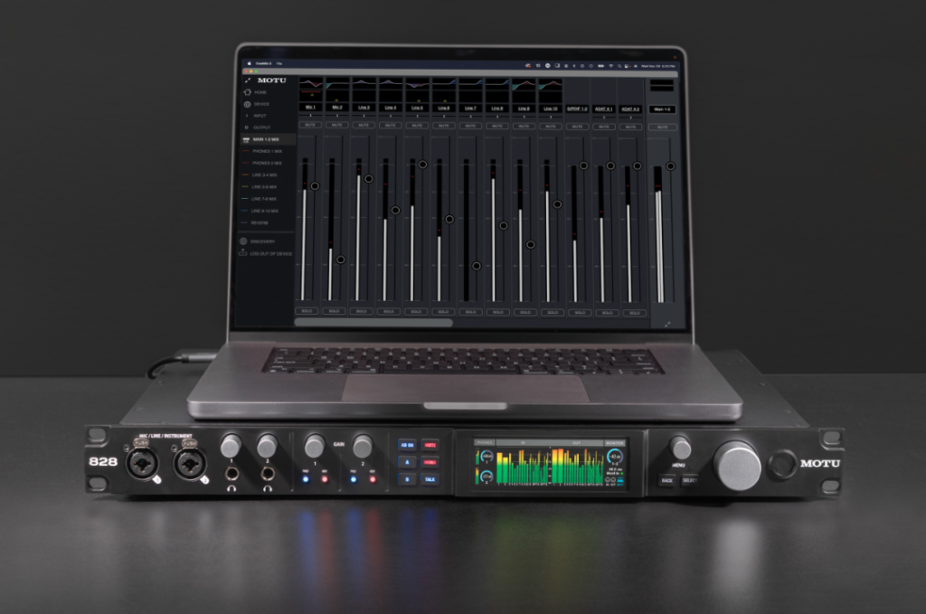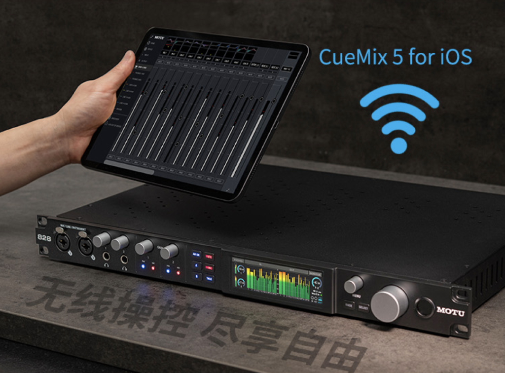 828 的强大 DSP 还提供独立的监听混音,并带有板载效果处理。更重要的是,您还可以将 828 作为具有效果的独立混音器运行,并通过 MOTU 的 CueMix 5 应用通过 Wi-Fi 控制一切。