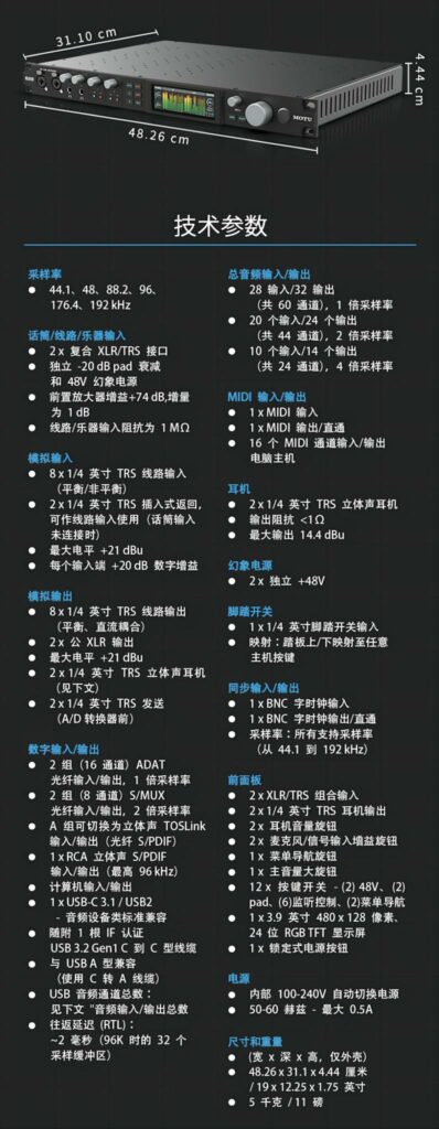 · 第五代 MOTU 经典 1U 双话放音频接口
