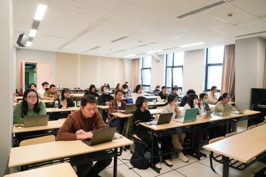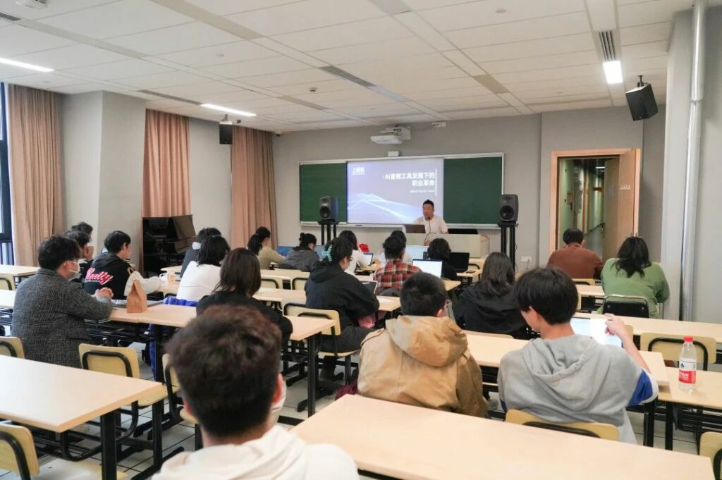 上午10点交流会准时开始,由上和弦创始人王志诚老师以《AI音频工具发展下的职业革命》为主题,分享了他对于AI技术在音乐领域发展的看法。王志诚老师首先总结了包括语音,文字,影视配乐等具体产业里不同公司的发展现状,然后结合自己个人多年的行业经验对音乐行业可能会产生的变化进行了预测,并解答了现场很多同学关于AI音乐的问题。有关AI技术对音乐产业的影响一直是众多同学一直关注的兴趣点,这场演讲收获了在场师生的一致好评。