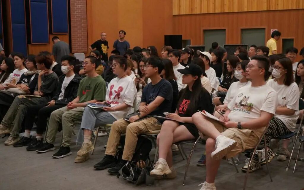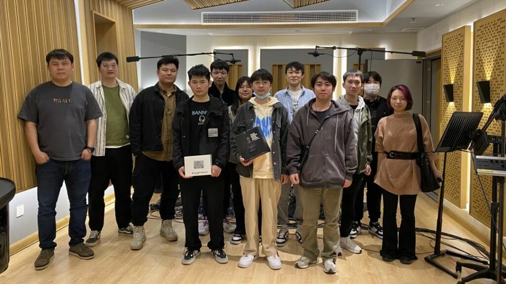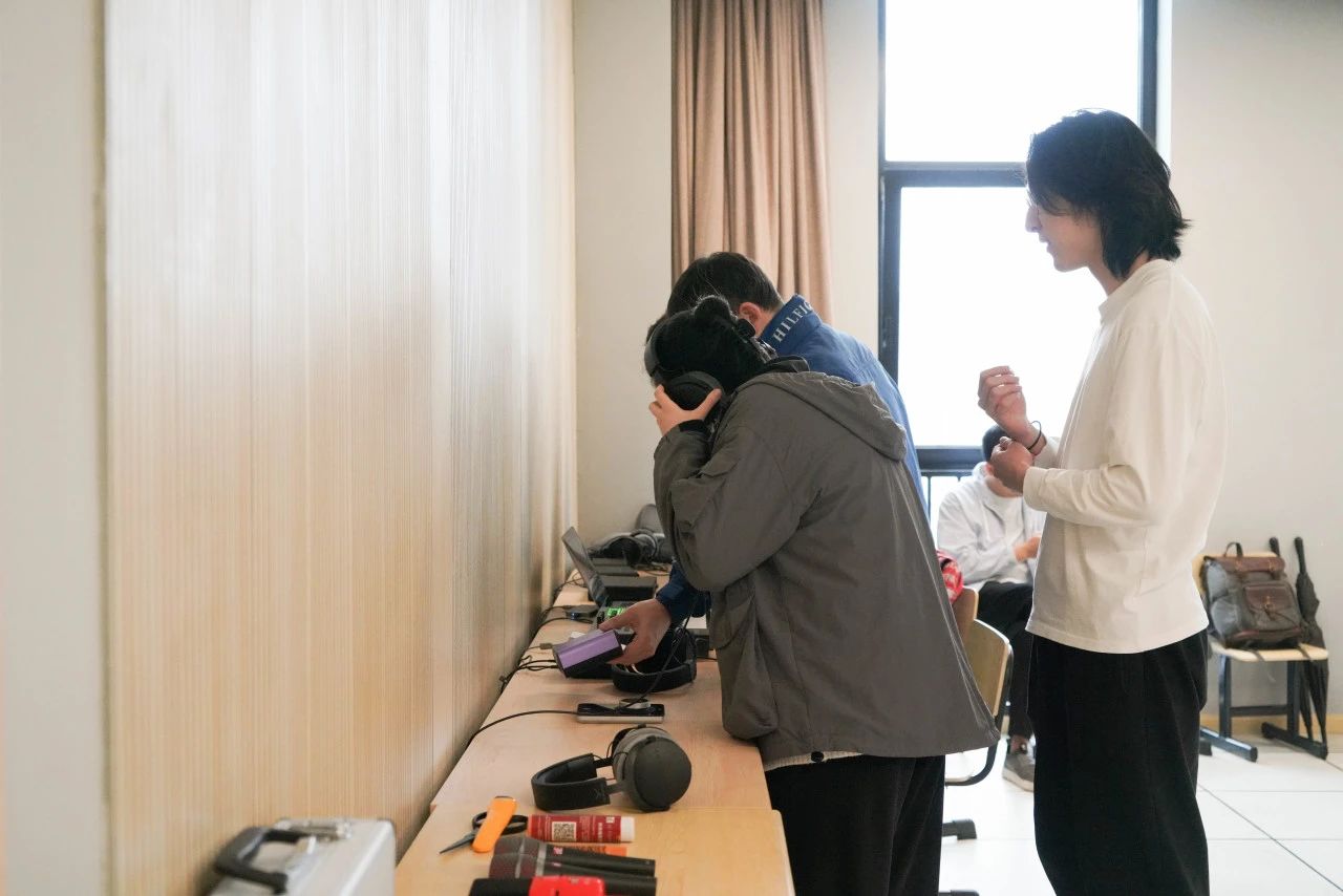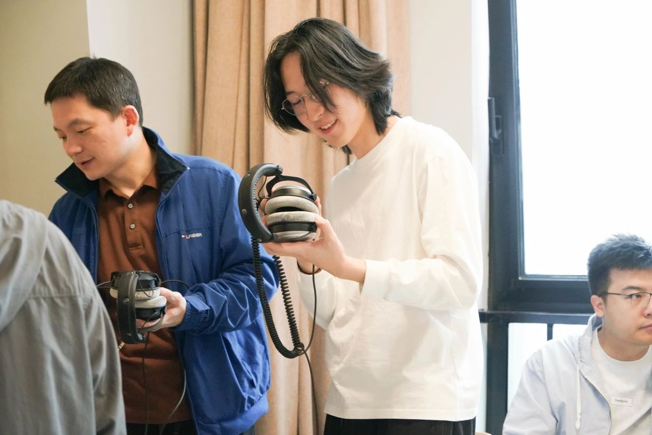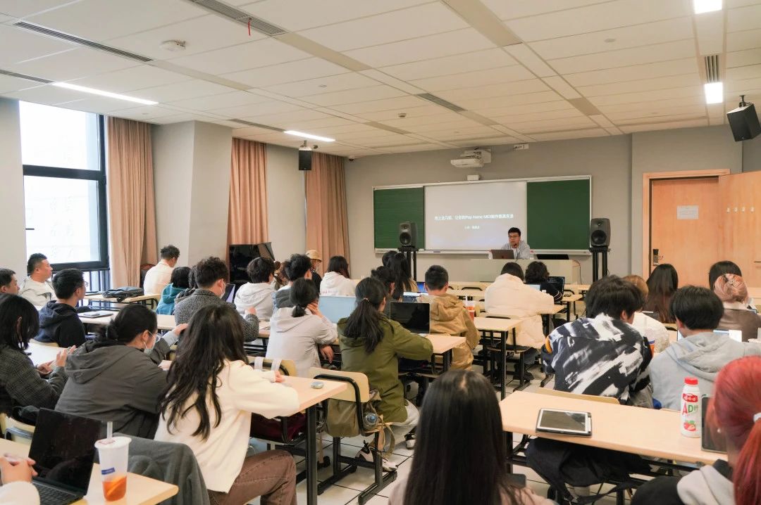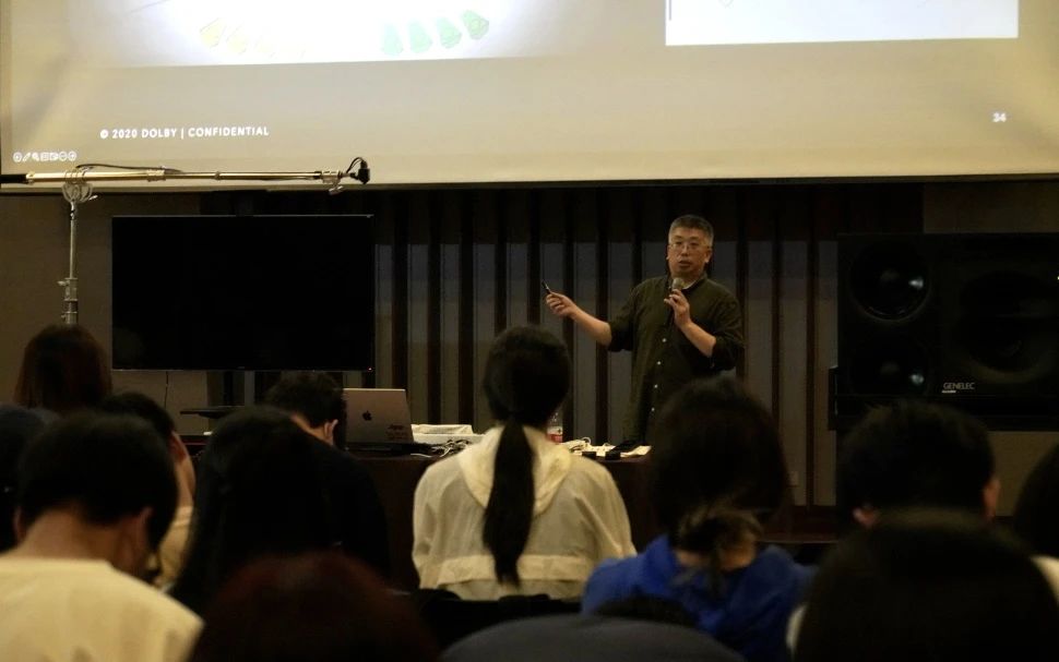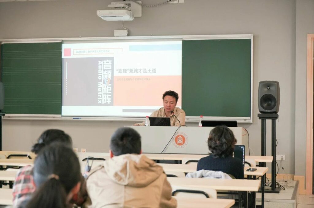 接下来,怡同科技的技术工程师沙灏通过带领同学回顾录音技术的发展历史,让同学们了解了录音和数字模拟转换的过程,并分享了提升录音音质的原理和技巧。帮助了很多同学认识到专业录音和混音的未来发展方向,以及AI对音乐的制作流程会产生的影响进行了讲解。