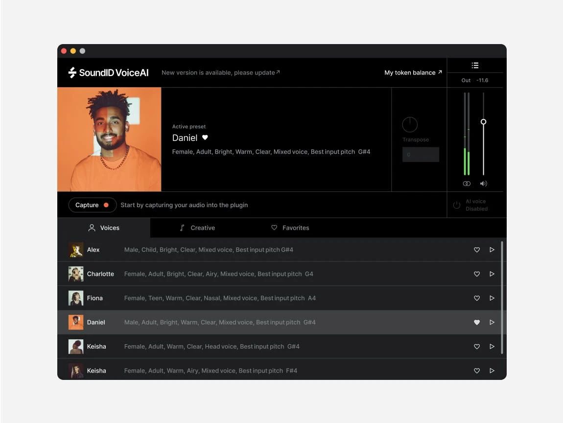 作为DAW中的插件运行,VoiceAI提供了便捷性和方便性。只需将VoiceAI插入音频轨道,选择所需的声音或乐器模型,处理音频,并实时体验转换。凭借丰富的声音和乐器库,包括多样化的歌手、铜管乐器、弦乐器、talkbox和故障类型的乐器,Sonarworks确保为每种流派提供高质量的音频模型。利用基于云的处理,VoiceAI提供超快的处理时间和无损音频质量,适用于任何计算机设置。