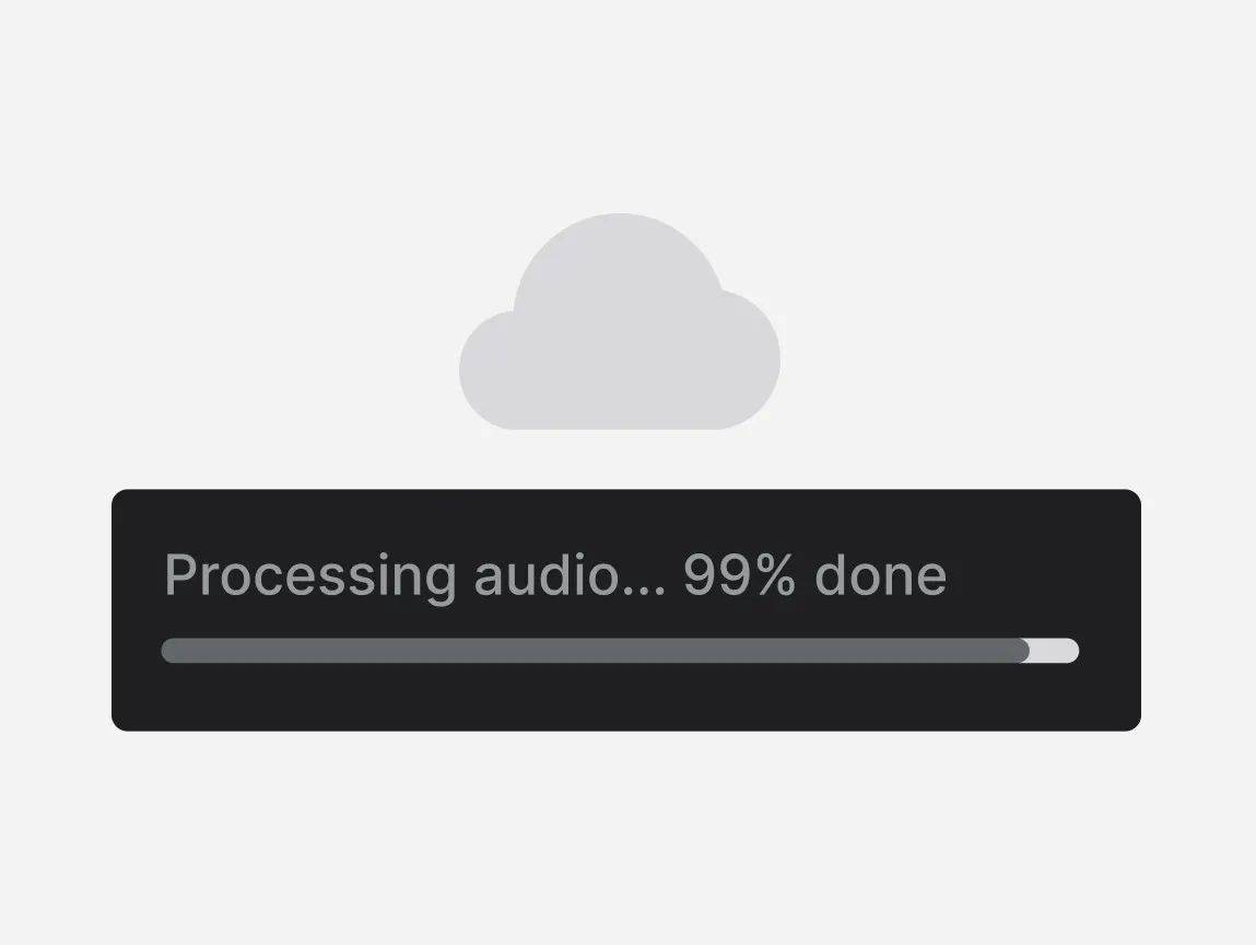 插件会将捕获的音频发送到云端。 处理时间大约是音频长度的 2.5 倍。处理需在联网下进行。