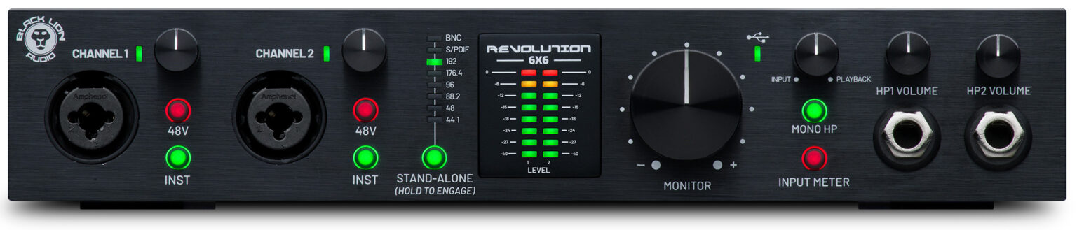 黑狮Revolution 6×6不仅仅是一款6进6出的高品质声卡,它还可用作主时钟、独立DAC和ADC,拥有世界一流的字时钟技术和低噪声转换。通过USB OTG 连接,可在手机或平板电脑中录制音频,或将音频从笔记本电脑发送到任何移动设备中,实现在线直播演出。专有技术Macro-MMC 时钟可用于同步其他硬件设备,从而为您的音乐提供更高音质。