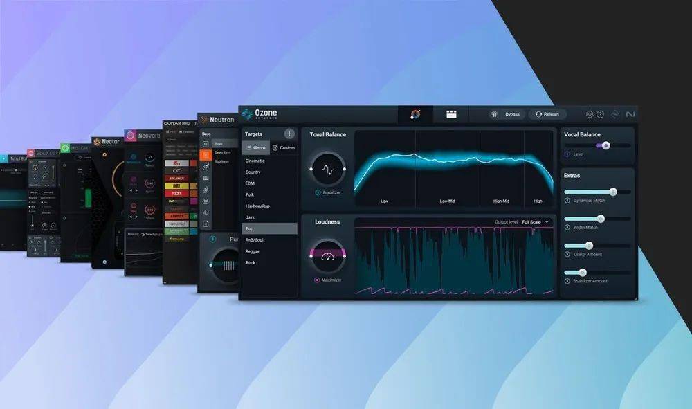 iZotope Music Production Suite 6.5(原价¥4769)是一款高品质音频插件套装,包含最新版本的 Ozone 11、Nectar 4 和 Guitar Rig 7 Pro,提供业界最领先的混音、母带制作、语音处理、各种效果等工具。使用 Music Production Suite套装提升您的音质,简化您的工作流,充分发挥您作品的终极潜力。
