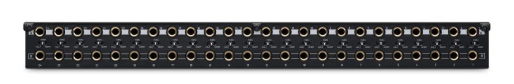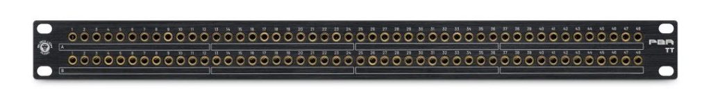 跳线盘主要以接口的类型进行分类,通常有1/4英寸TRS接口,TT接口和XLR接口的跳线盘。其中TRS接口的跳线盘最为常见,以黑狮的PBR TRS跳线盘为例,正反分别有48个1/4英寸的TRS接口。TT接口的跳线盘则是采用正面TT接口口背面DB25接口口的设计,可以在同样大小的机箱内设置更多的接口数量,如黑狮PBR TT仅正面就有96个TT接口。