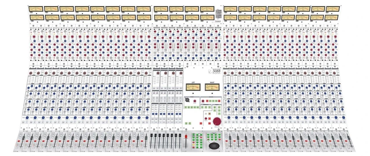5088的架构是可自由配置的,你可以在基础框架上添加以16为单位的单声道或立体声通道,最高支持96个通道,也可以8为单位增加总线处理通道。你也可以根据需要选择是否为每个通道增加处理或话放模块,以及定制VU 表头。5088的工作流程是完全定制化的。
