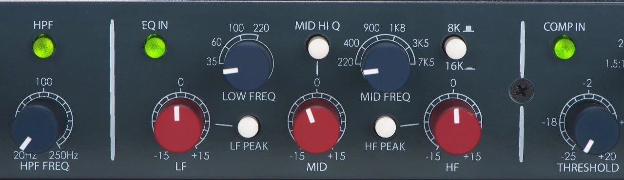 Shelford 5035包括一个复古风格的3波段电感均衡器,它本身拥有一种特殊的声音。这是对一些著名的经典设计的现代诠释:低频段的灵感来自1064,中频段来自1073,加上一个更现代、更开放的高频段。它是一种粗犷的、色彩丰富的均衡器,当你使用它时,会在低频产生谐波效果,为声音、吉他或任何其他音源增添丰富的光泽。