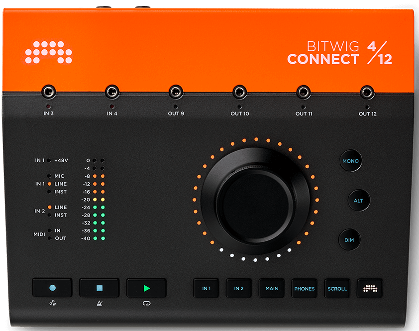 Bitwig Connect 4/12是一款集成化的音频解决方案,集成了4进12出的音频/CV/MIDI接口、监听控制器以及DAW控制器的功能于一体。